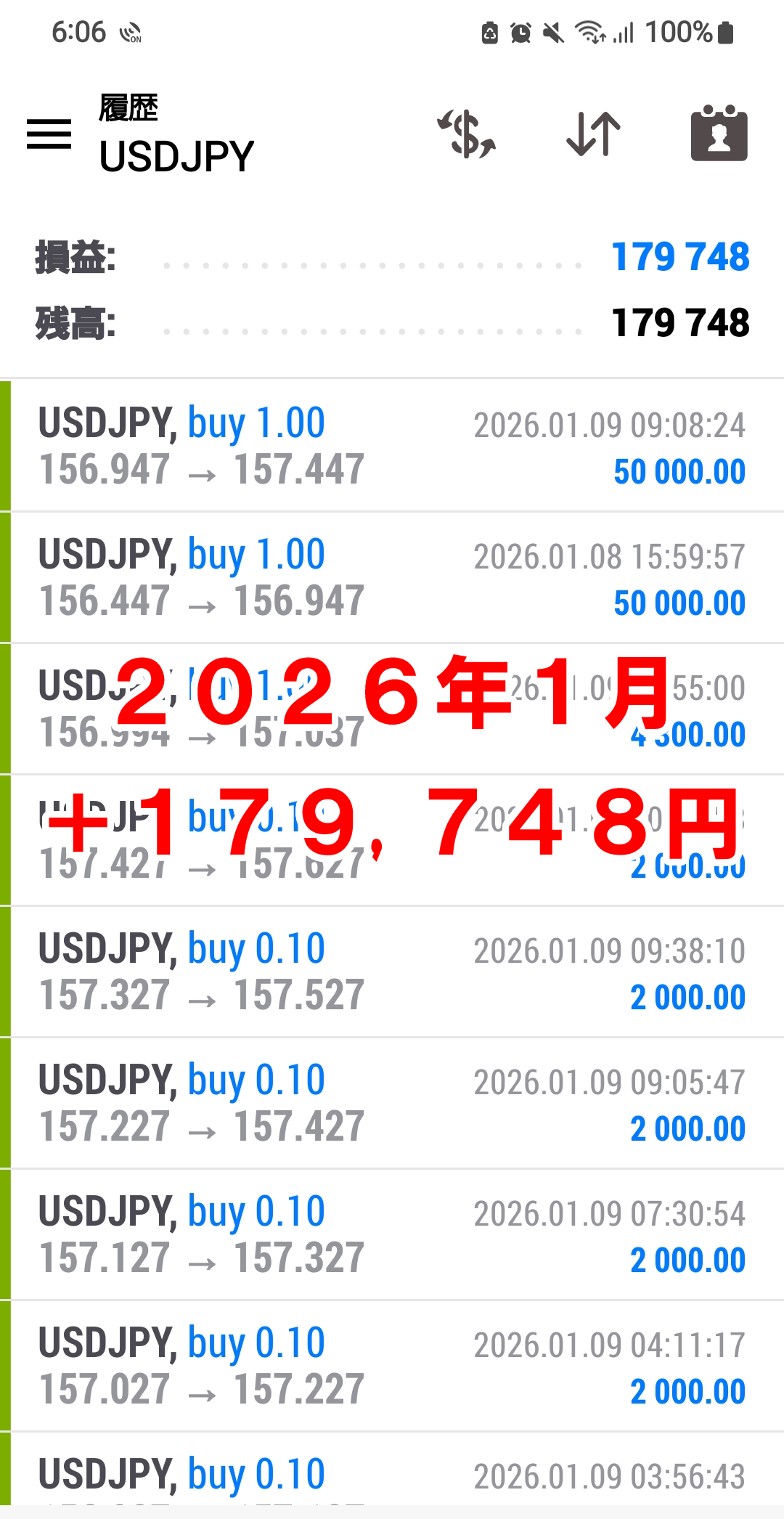 ✔ 買いか売りを予想するドル円 2日で+179,748円