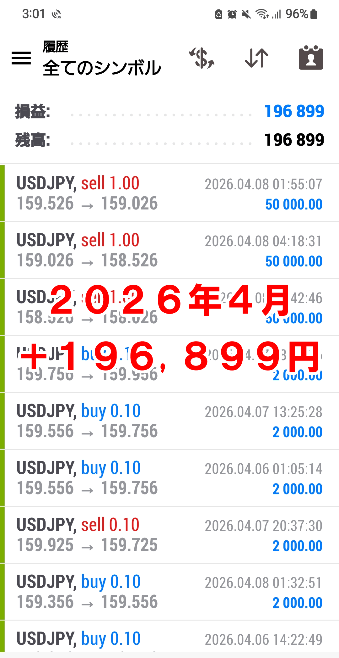 ✔ 買いか売りを予想するドル円 3日で+196,899円