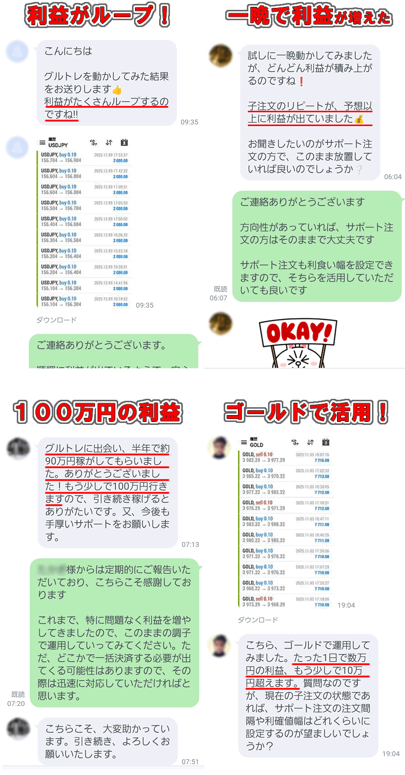 サポートロングは、グルトレを終了するまで決済しません。