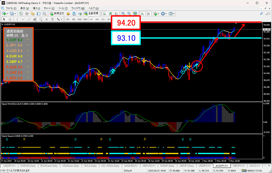 【オープンオーダー】 オレンジ:指値注文、青:逆指値注文